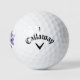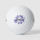 Personalized golf balls with Hawaiian flower logo. Tropical Hawaiian Hibiscus flower. Customizable template with custom name initial letters. Fun gift idea for golfers and golfing fans. Suitable for sporty men and women. Color of logo can be changed. Available on good brands like Wilson, Callaway and Titleist. Gift box of 3 balls.
