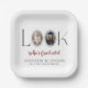 Commemorate your graduate's success with these personalized graduation photo memory paper plates. This design features a sophisticated "LOOK" graphic overlaying space for two meaningful photographs, perhaps a throwback and a current graduation shot. The heartwarming text "Who's Graduated" is accompanied by editable fields for the graduate's full name, class year, and high school. These plates are ideal for graduation parties, adding a custom flair to your dessert or appetizer table while serving as a beautiful keepsake of this important life event. Celebrate in style and cherish the memories.