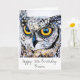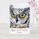 Personalized Great Horned Owl Happy Birthday greeting card. Name and age is fully customizable on front and inside to any text you wish for.