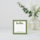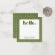 Personalized stationery enclosure notecard with a green gingham pattern in notes of deep forest sage olive garden green with the sentimental words "hello". Tuck it into a flower bouquet or meaningful gift. These minimal flower shop inspired enclosure cards bring a retro kitchen vibe to your most thoughtful moments.