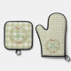Personalized Green Gingham Newlywed Wedding Oven Mitt & Pot Holder Set