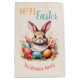 Personalized Happy Easter Bunny Eggs Family Gift Bag. Celebrate Easter with this charming personalized gift bag featuring an adorable watercolor bunny surrounded by Easter eggs and delicate spring flowers. The 'Happy Easter' message and customizable family name make it perfect for adding a special touch to your holiday gifts.