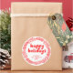 Personalized Happy Holidays Wreath Red and White Classic Round Sticker