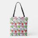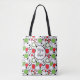 Celebrate the season in style with this personalized holiday tote bag, featuring a cheerful front message like “Merry & Bright” and a custom name or phrase on the back. With its bold red, green, black, and white abstract pattern and festive oval label, this tote is perfect for holiday shopping, gift-giving, or carrying baked goods and handmade treats.