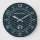 A modern graphic composite blue metallic material style texture print decor on a clock face. Good for a modern gift, or for a decor with an automotive urban industrial look to it. Personalize it with text and your monogram. Personalize it with 2 lines of text. A great gift idea for gatherings, celebrations and occasions.