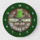 Easily Personalize this distressed wooden effect Irish pub sign made to look like an old beer barrel keg and and green beer graphic with a lucky green shamrock clover with your own text or name for your St Patrick's day drinking celebrations.