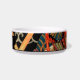 This is a heavy, durable bowl decorated with Tibbies of many colors, the perfect size for hungry/thirsty Tibs. The design is interesting and printing clear.