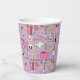 Celebrate in style with these personalized birthday party paper cups featuring a fun, vibrant lavender and pink doodle pattern. This unique design showcases cute hand-drawn illustrations of people dancing, a DJ, flowers, wedding cakes, and musical notes—perfect for a Sweet 16, Quinceañera, or any special milestone birthday celebration. Customize the name, like "Jasmine," to make it truly yours! These durable cups add a unique, whimsical touch to your party decor, great for drinks or holding snacks.