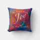 Christmas pillow has original art in bold shades of red, blue and orange with Joy To The World and it is ready to be personalized with your own name or other text for fun and festive holiday decor for your home. Art copyright Ann Powell all rights reserved.