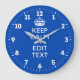 Personalized Keep Calm And Have Your Text on Blue Large Clock