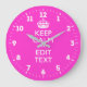 Personalized Keep Calm And Have Your Text on Pink Large Clock