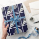 Unique lacrosse gift wrap or party decoration featuring lax stick on a navy blue background. Edit text to add name of your favorite player or team coach.