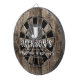 Faux wooden background with monogram and family name in center of the board. Other colors available in the shop. This fun template lets you create your own personalized man cave "your name" whiskey or bbq backyard bar dart board sign. Unique fun gift