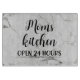 This unique glass marble effect cutting board makes an ideal gift for any occasion. Personalize for the person you gift it to whether it's for Mom or someone else this will be a great personal touch to there kitchen or dining room. "Kitchen open 24 hours"