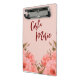 The clipboard features watercolor pink blossoms set against a fairer pink background. Imagine your name or the name of a friend centered in scripted font. Just edit the design and add in the name you prefer.