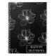 An elegant personalized notebook featuring a minimalist black background with delicate white floral line art. The clean and modern design includes a customizable name, making it perfect for journaling, planning, note-taking, or gifting. This chic floral notebook suits students, professionals, and anyone who loves timeless, aesthetic stationery with a personal touch.