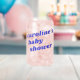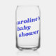 This clear glass features bold, retro-inspired lettering for a fun and modern baby shower drinkware option. The playful angled text stands out beautifully on glass, making it perfect for serving cocktails, mocktails, soda, or sparkling water during the celebration. A great choice for hosts who want cohesive, design-forward details. This personalized glass also doubles as a keepsake guests can use long after the shower ends.