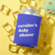This personalized baby shower can cooler in bright blue features bold, playful typography on a bright blue background for a fun, modern celebration look. Customized with the guest of honor’s name, it’s perfect for keeping drinks cold during the shower and throughout the party. The clean, high-contrast design is easy to read and photographs well for candid party moments. A practical and cheerful favor guests can use during the celebration and take home afterward.
