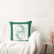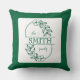 Elevate your home decor with this elegant and timeless personalized family name throw pillow. Featuring a chic green and white color palette, this design showcases a delicate botanical wreath surrounding your custom surname in a sophisticated serif font.