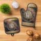 Upgrade your cooking routine with our oven mitts and potholders, essential kitchen accessories that blend reliable performance with personalized style. Expertly crafted for comfort and heat protection, these kitchen essentials help you handle hot cookware with confidence while adding a custom, decorative touch to your space. Designed to be both practical and visually appealing, they enhance everyday cooking, baking, and entertaining while complementing your kitchen décor with a unique, personalized look. Centre has a steampunk style metallic luxury luster dialing numbers from 1 to 12 of a clock. The monogram and the shimmering background of pink agate stone can be personalized. Replace initial and the background with your own artwork. Perfect for cottagecore, farmhouse interiors and wall accent.