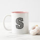 Letter S Mug Monogram Art Minimalist Style Intricate Pattern, Black and White Luxury Decor Modern Typography Personalized Gift Sleek Curves