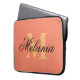 Personalized monogram orange colour laptop sleeve. Elegant typography design with monogrammed initial letter. Custom 15 inch cover. Luxury computer accessories for him or her.