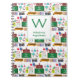 Modern, colorful NOTEBOOK with cartoon of school subjects. MAIN COLOR IS WHITE. There is a panel on the front with MONOGRAM and placeholder name which are CUSTOMIZABLE so you can add your name or text. Matching binder and other colors also available from the BACK TO SCHOOL Collection.