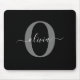 Personalized Monogram Script Name Black White Gray Mouse Mat