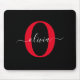 Personalized Monogram Script Name Black White Red Mouse Mat