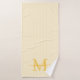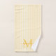 Add a touch of elegance to your bathroom with this personalized monogram bath towel set. Featuring a soft yellow and white striped background, each towel is customized with your monogram initial and name in a fancy script font for a timeless, feminine look.