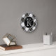 Personalized Monogrammed Black White and Gold Plaid Wall Clock
