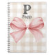 Stay stylish and organized with this charming personalized notebook featuring a pink bow on a neutral gingham background. Designed with a soft, feminine aesthetic, it showcases an elegant monogram and name at the top, making it a beautiful accessory for everyday note-taking.