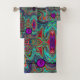 Personalize this Cool Modern Bath Towel Set that features a Wavy Sea Foam Green and Red Trippy Abstract Pattern with Blue, Magenta, Hot Pink, Orange, Lime Green and Aqua Accents. The result is a groovy, colorful, psychedelic abstract design that you will love!