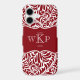Personalized Monograms Cranberry Damask Pattern Phone Case