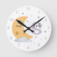 Bring a dreamy and calming touch to your child’s room with this personalized sleeping moon nursery wall clock, featuring a soft pastel lavender/purple initial, fluffy clouds, and tiny stars. The gentle crescent moon illustration adds a peaceful vibe—perfect for a baby girl nursery, toddler room, or kids’ bedroom.