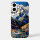 Experience the beauty of nature with this personalized blue mountain sunset phone case, designed in a stunning stained-glass inspired style.
