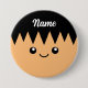 Personalized name button with funny cartoon face with black hair. Fun accessories for kid's barber shop, hair salon, hairdresser etc. Also fun for children's Birthday party.