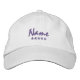 Any name embroidered in pretty dark purple lettering for your favorite woman or girl. Embellished with 5 matching flower stars. Use the templates to enter the name of your choosing to personalise or select an alternate color.