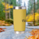 This personalized metallic gold insulated tumbler combines style and functionality for everyday use. Customizable with any name, it keeps beverages hot or cold for hours while providing a sleek, modern look. Perfect for work, school, travel, or gifts, this durable tumbler blends convenience with personalized elegance.