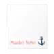 Personalized nautical boat anchor and rope letters writing notepads. Custom writing note pads with maritime theme. Personalized memo pad design for home or office. School / office supplies for men women and kids. Customizable color. Navy Ship anchor design.
