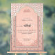 Personalized Nikkah Welcome Acrylic Sign – White Floral Lattice Islamic Wedding Décor with Pearlescent Pink Background.
