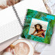 Cute, square, palm fronds sketch pad, or journal, has two places for personalization. Upload a photo, and include three initial monogram in the upper corner. The square size frame, in aqua blue and green, will accommodate a photo of any orientation with the subject in the center. Artwork could also be added, and this book makes a nice gift for the budding artist. The pages can be changed to lined, recipe, and more. See the options in the sidebar.