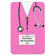 Creative nursing school graduation gift card template featuring pink hospital scrubs. To personalize, edit text to add name of nurse grad.