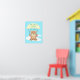 Cute teddy bear gliding on parachute with fluffy clouds on a light blue sky. Personalize with child's name. Colors are also customizable.