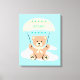 Cute teddy bear gliding on parachute with fluffy clouds on a light blue sky. Personalize with child's name. Colors are also customizable.
