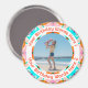Pretty Circular Personalized Orange Pink Turquoise Happy Birthday Photo Gift Magnet. In spring and summer colors of pink, turquoise blue, and orange. A playful round border surrounds the picture in the middle. Replace the picture with a picture of your own family member or best friend. Add your own words at the top and bottom. Give as a present for a birthday crelebration for her. Mother, sister, daughter, aunt, or grandmother will love putting this colorful gift magnet keepsake on their refrigerator to celebrate their family memories. In lovely, bright and light colors.