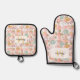 Personalized Pastel Pink Kitchen Tea Cats Oven Mitt & Pot Holder Set