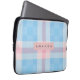 Personalized Pastel Sky Blue and Blush Pink Plaid Laptop Sleeve