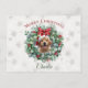 Send holiday cheer with this personalized Christmas postcard featuring a festive eucalyptus wreath, red bow, and your pet’s photo. Add your dog’s or cat’s name for a heartwarming touch. Perfect for Christmas greetings, pet lovers, and custom holiday cards that spread joy and personal style.