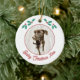 Celebrate your dog at Christmas with this charming personalized pet photo ornament. Add your own photo and change any of the text to customize. With pretty holly sprigs and modern script text in festive red, it beautifully showcases your favorite photograph of your dog, making it a perfect keepsake for pet lovers. Hang it on your tree to add a special touch to your holiday decor and cherish the memories for years to come.